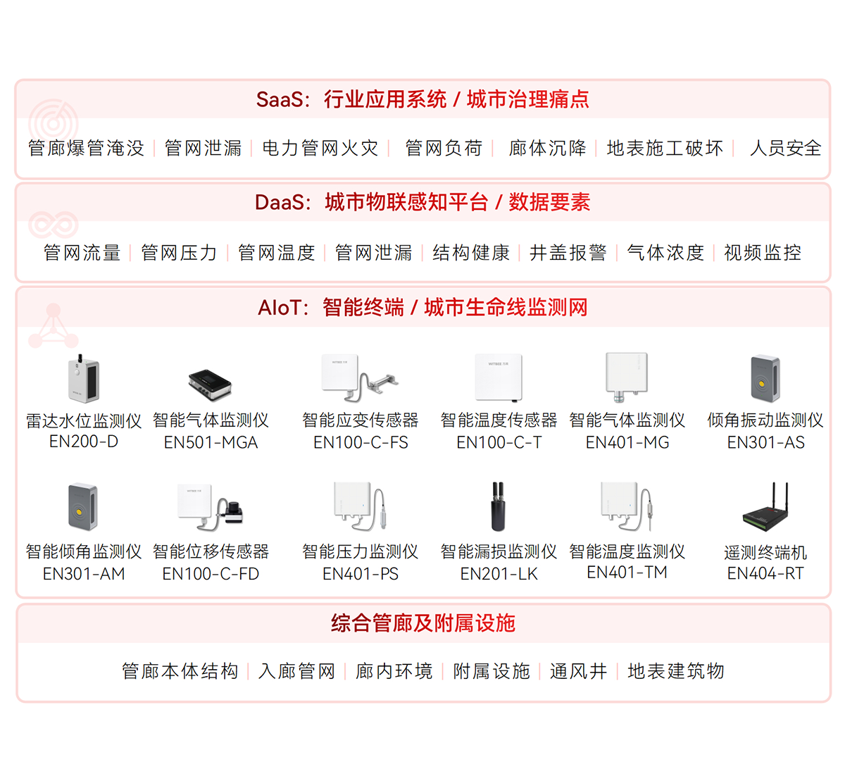 WITBEE?萬(wàn)賓?是中國(guó)首批城市生命線智能監(jiān)測(cè)儀器和大數(shù)據(jù)服務(wù)提供商,提供智能監(jiān)測(cè)儀器、智能基站、云端平臺(tái)等智能物聯(lián)網(wǎng)技術(shù)與產(chǎn)品線,賦能城市排水、供水、燃?xì)?、供熱、橋梁、建筑、隧道、綜合管廊、河湖等城市基礎(chǔ)設(shè)施生命線監(jiān)測(cè)感知網(wǎng)絡(luò)化建設(shè)和智能化管理,對(duì)接城市運(yùn)行管理服務(wù)平臺(tái),支撐城市運(yùn)行“一網(wǎng)統(tǒng)管”,提升城市生命線運(yùn)行效率和安全,提高城市精細(xì)化治理能力。